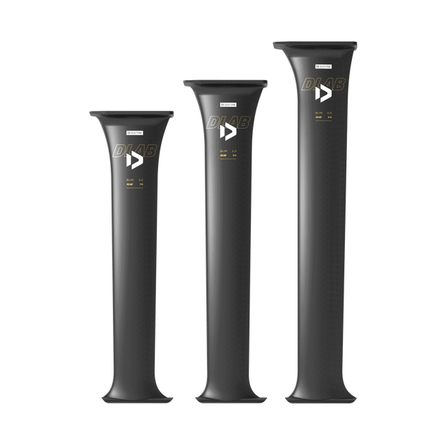 Each size of the Mast Slim 2.0 D/LAB is individually designed for its intended use, incorporating High Modulus Carbon fiber with optimized fiber orientation to achieve superior bending and torsional stiffness. The new drag-optimized base plate design significantly reduces resistance while taking off, touching down and landing jumps. Combined with the tapered chord length and thickness for optimized strength with the lowest possible drag, this mast will take you a huge step forward in terms of high-end performance.